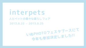 interpetsに今年も参加します! | on and on blog 今年も「interpets」のいぬPHOTOフェスタブースに参加します。本日8月22日は、ビジネスデーということですので一般公開はされていませんが、明日8月23日から3日間は一般公開で、ペット同伴で入場して頂く事ができます。他にもたくさんの企業さんのブースがありますので1日満喫できますよ!ついでにon and onのブースにも遊びに来てくださいね。 ブースは、入り口エスカレーター降りてすぐの「いぬPHOTOフェスタ」内にあ …