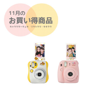 お店のディスプレイもハロウィンからクリスマスに変わってきましたねー。梅田ロフトのロフトマーケットでも、ハロウィンマーケットから、ウォームファッションマーケットに変わり寒い季節が待ち遠しくなっちゃうファッションアイテムが並んでいますよー。 さて、今月のお買い得商品は、キャラクターチェキ「リラックマ」と「キキララ」をご用意しました!チェキ本体をご購入頂くと、もれなくキャラクターチェキフィルムがついてきます! 11月限定ですので、気になっていた方は、ぜひこの機会をご利用ください。